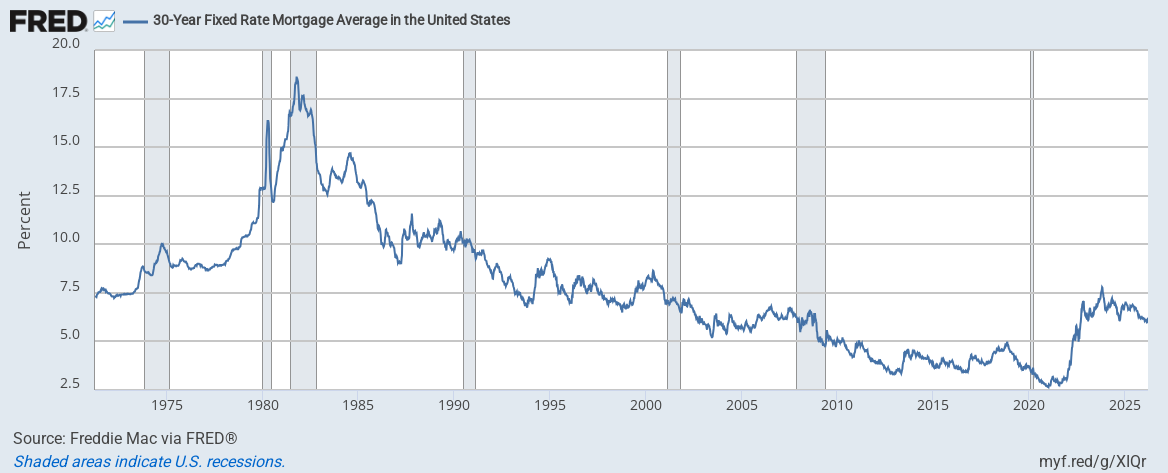 The 30-year fixed mortgage rate spiked past 11% again in 1987, then began a long, mostly steady descent. This gave homeowners who bought amid eye-watering rates ample time to refinance, refinance, and refinance some more. By the mid-1990s, very few homeowners still had double-digit mortgage rates. America’s collective memory of that painful period began to fade.